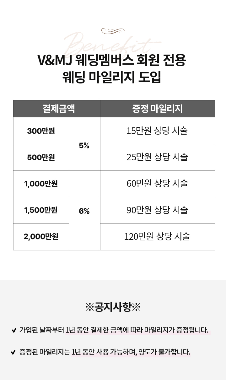 웨딩회원 가입승인일로부터 1년동안 적립