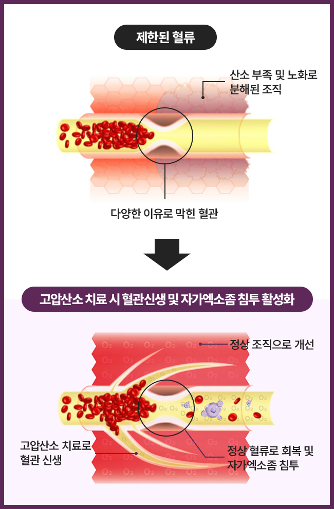 여기에 고압산소치료까지 더해져 10배 시너지 효과를 볼 수 있습니다.