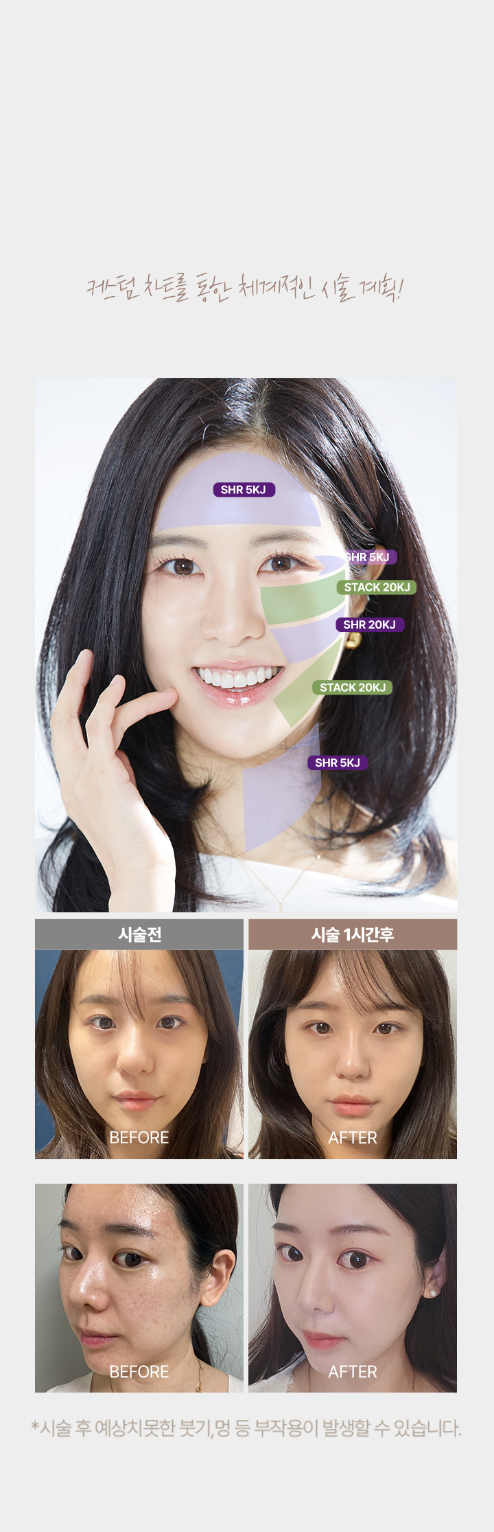 부작용 안내 : 개인에 따라 비대칭, 멍, 부기 차이 있을 수 있습니다.