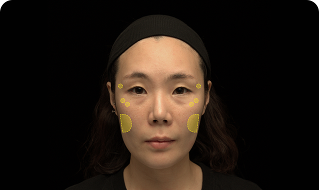 감소하는 관자와 광대 아래 측면에 필러를